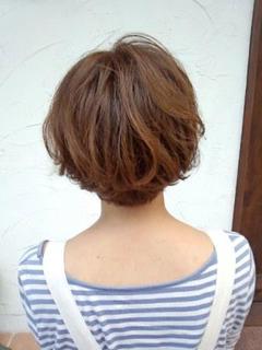 毛先にゆるくパーマをかけて柔らかさを出した、女の子らしいショートボブスタイル*